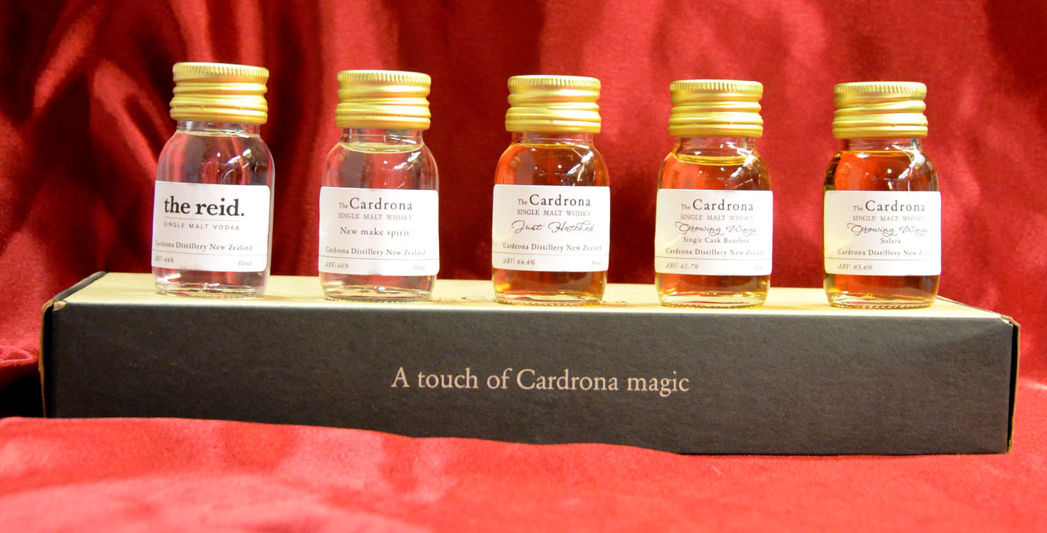 A gift pack containing a 5cl miniature of the Reid Vodka, Cardrona New Make Spirit, Just Hatched, Growing Wings Bourbon and the Growing Wings Solera.